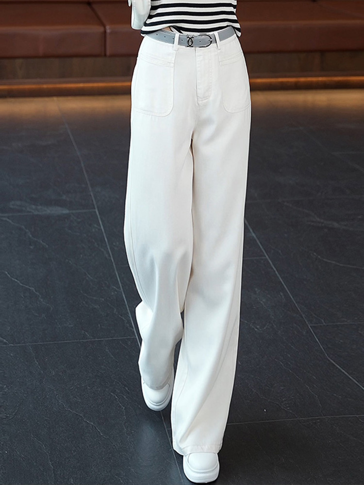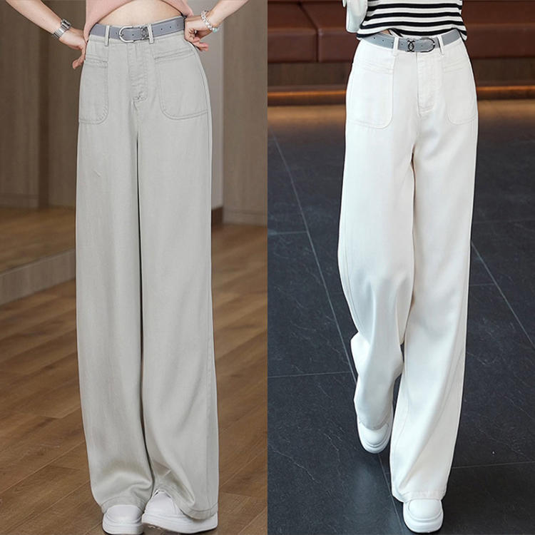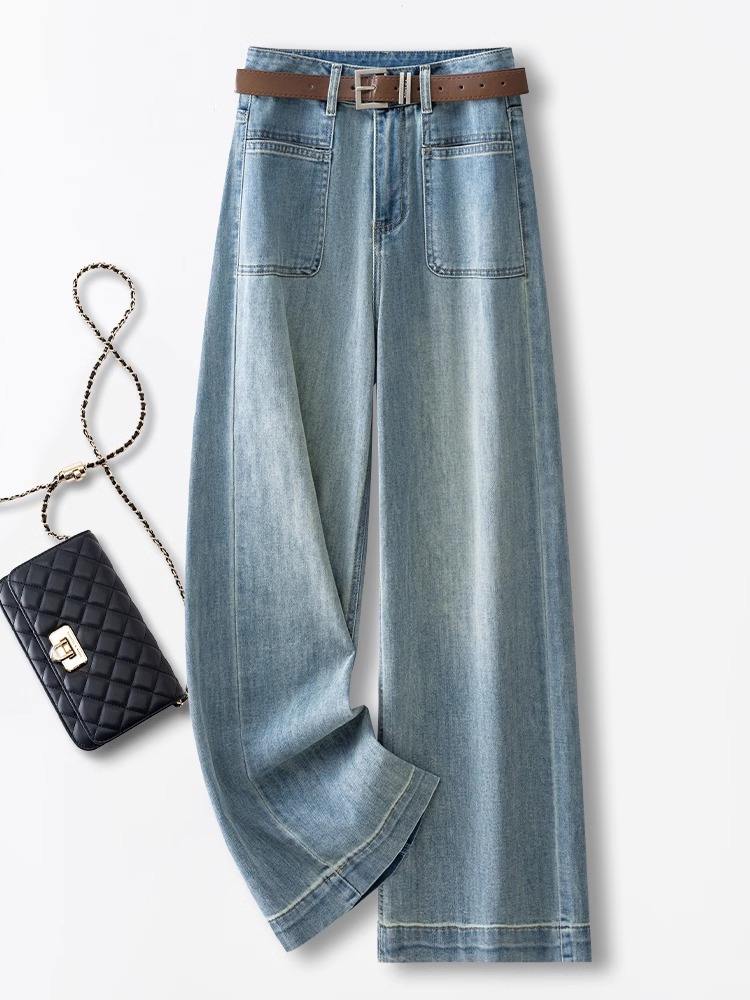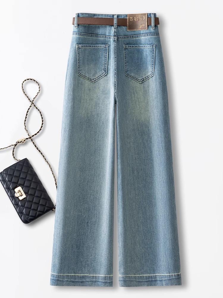 2025年新款春夏季高腰女百搭休閒洋氣寬鬆直筒牛仔褲窄版寬褲